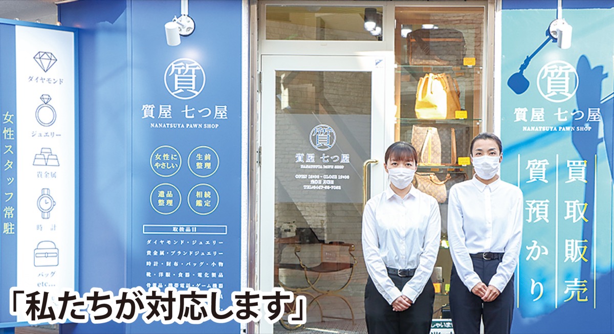 大船駅東口徒歩3分の場所に今秋オープンした『質屋の七つ屋』。「大事にしてきたものを適正価格で査定してくれる」、「女性スタッフの接客が丁寧」と対応への評判は上々だ。