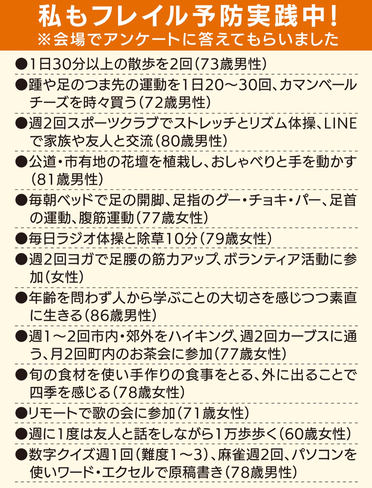 金氏は、「フレイルを予防・改善するためには、歩行機能の維持や筋力強化運動の実践、たんぱく質やアミノ酸などの適切な栄養補給、日頃からの認知機能維持・向上への努力が必要です」と締めくくりました。