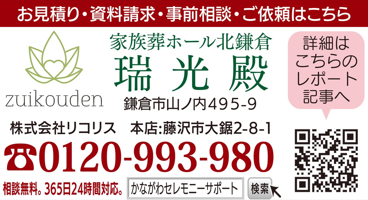 また同社が運営する「家族葬ホール瑞光殿」(山ノ内495の9)の利用も可能。1日1組貸切のため、故人との最後の時間をゆったりと過ごしたい人におすすめだ。