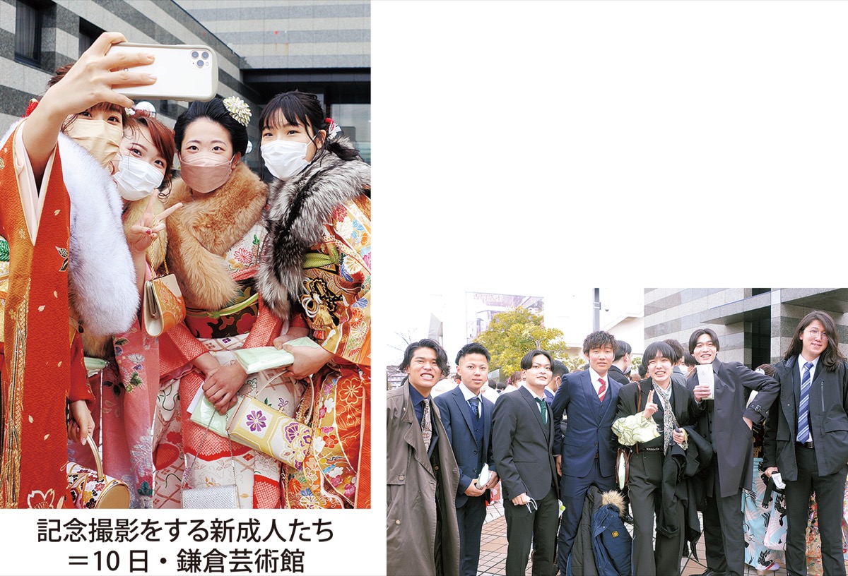 対面による鎌倉市「成人のつどい」が1月10日、鎌倉芸術館で2年ぶりに開催された。昨年は感染症拡大のため、オンラインのみの開催だったが、今年は密を緩和するため2部制で行われた。