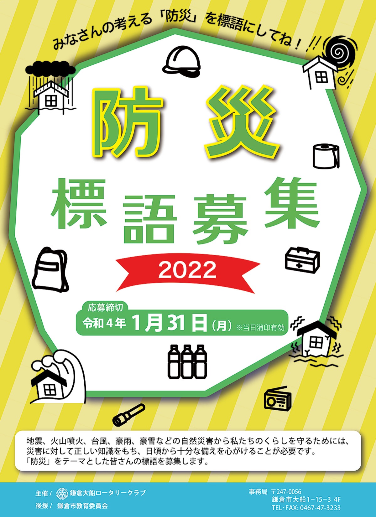 奉仕団体の鎌倉大船ロータリークラブが1月末まで募集している「防災標語」の締切が迫っている。
