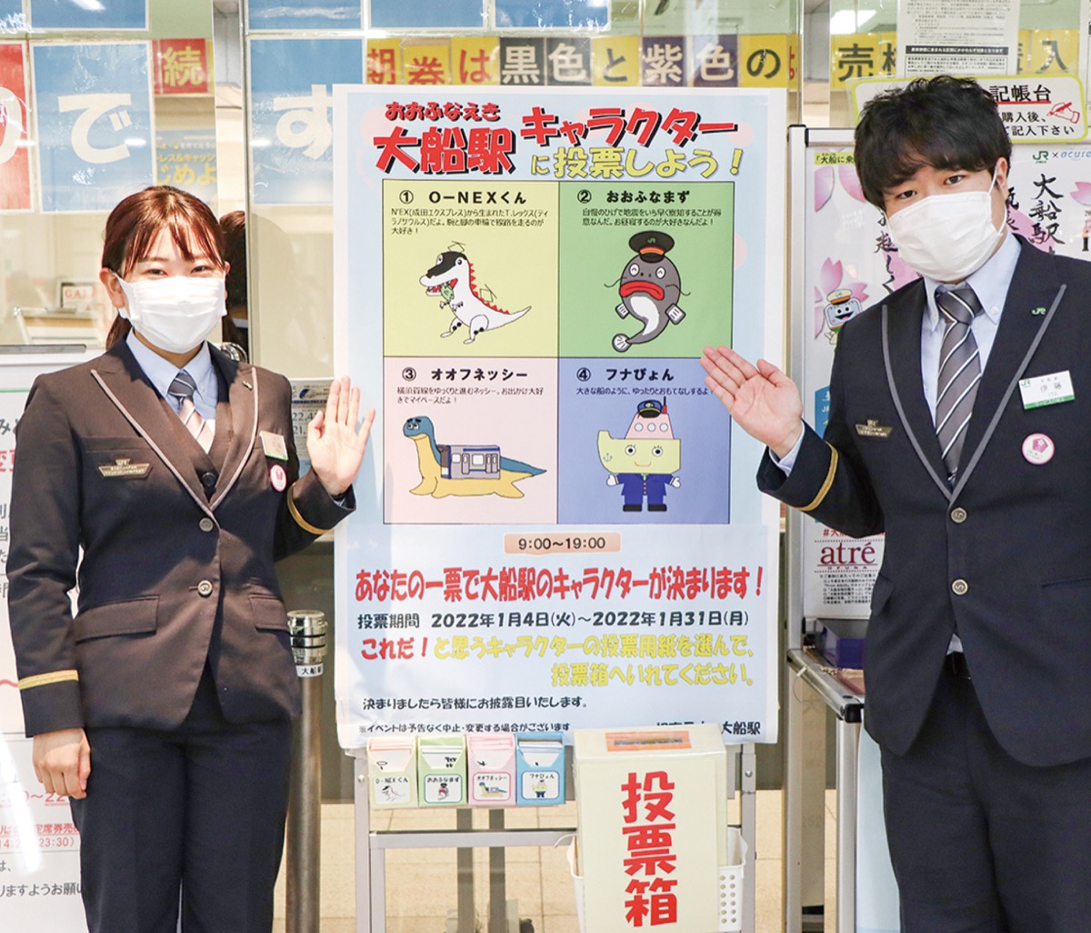 JR大船駅のオリジナルキャラクターを決める投票が、1月31日(月)まで行われている。投票は誰でも可能。南改札のみどりの窓口前に設置された投票所で、4種類のキャラクターカードの中から好みのものを1枚選び、投票箱へ入れる。