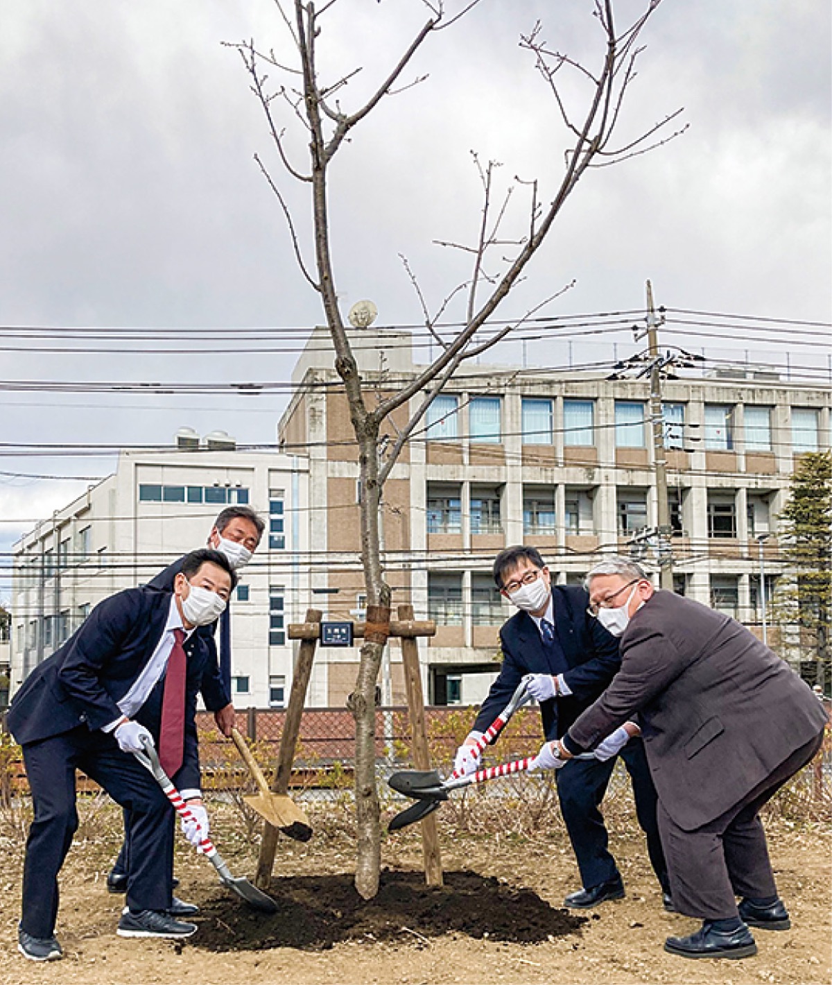 地元の桜「玉繩桜」を広めようと、鎌倉大船ロータリークラブ(RC)が続けてきた植樹活動が2月17日、鎌倉女子大学岩瀬キャンパスで完了した。当日は、同クラブのメンバーや学校の教職員たちが参加し、3本の玉繩桜を植えた。