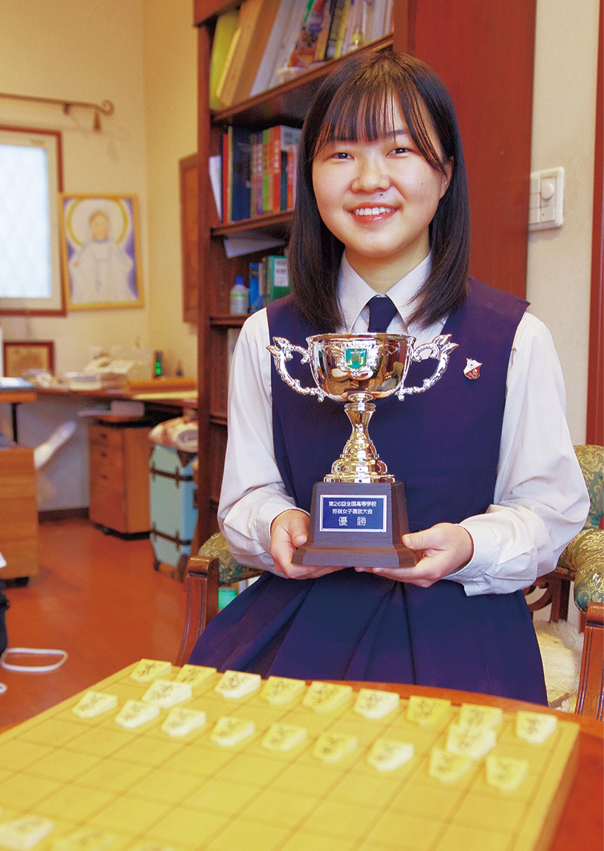 清泉女学院高校(城廻)の中澤秀佳さん(現2年)が、3月20日に静岡県・日大三島高校で開かれた「第26回全国高校将棋女子選抜大会」(日本将棋連盟ほか主催)に出場し優勝。自身初の栄冠を手にした。