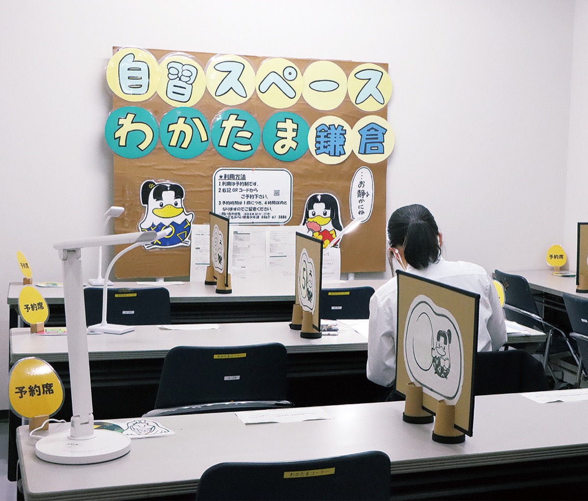 勉強や読書、資格取得に向けた学習など、中学生から社会人までが利用する自習スペース「わかたま」。鎌倉市はこれまでの鎌倉生涯学習センター(1階)と玉縄青少年会館(1階)に加え、腰越行政センター(2階)と大船行政センター(3階)にも4月25日から開設。市は4拠点を通じて、青少年の地域での居場所が増えることを期待している。