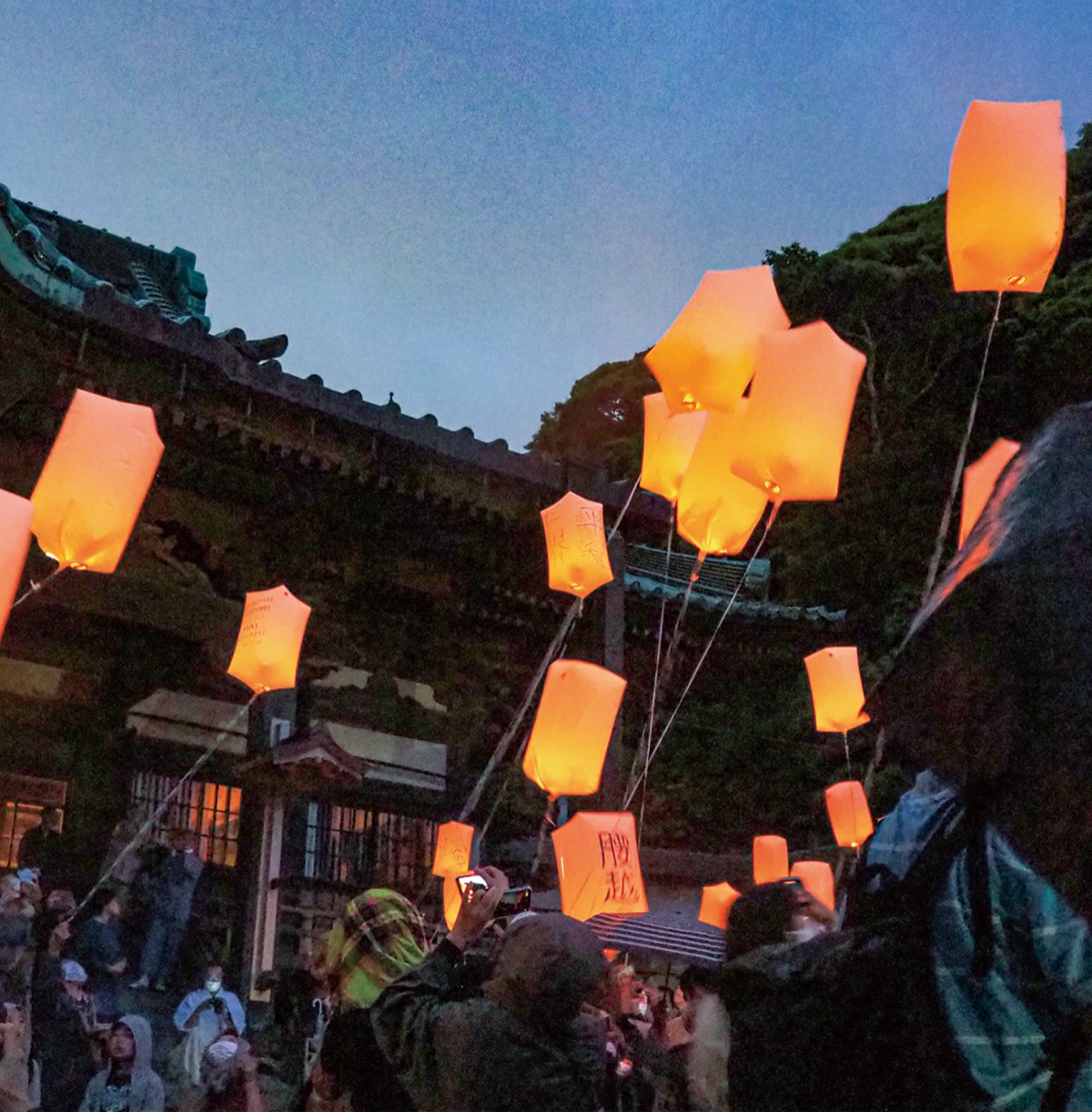 龍口寺(藤沢市片瀬)で5月21日、腰越スカイランタンまつりが初開催された=写真。腰越地域を元気にしようと活動する「チーム腰越」(中嶋寿子代表)が主催。