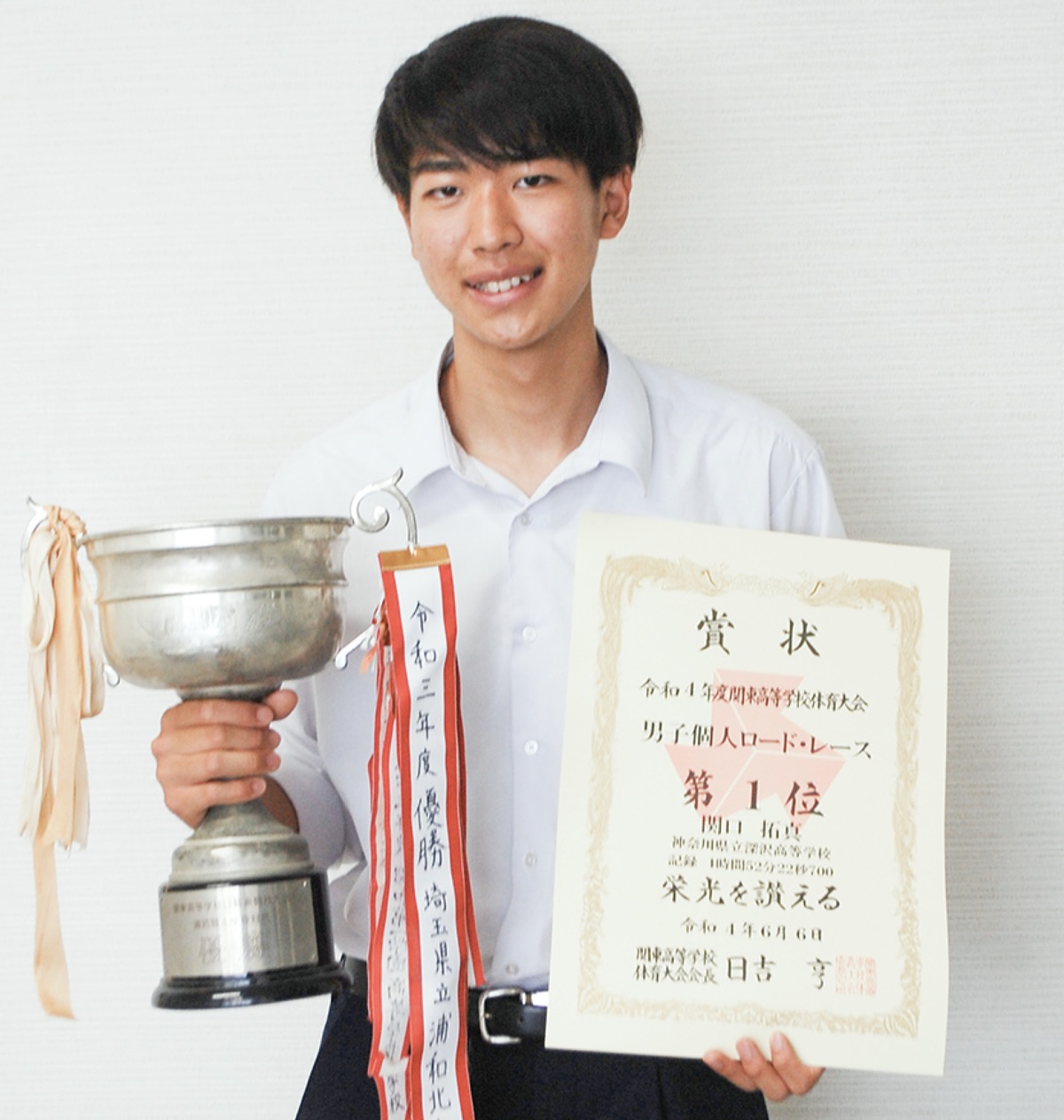 「2022年度関東高等学校自転車競技大会」が6月6日、群馬サイクルスポーツセンターで行われ、深沢高校3年の関口拓真さん(17)が優勝し、8月に香川県で開催される全国高校総体(インターハイ)の出場権を獲得した。