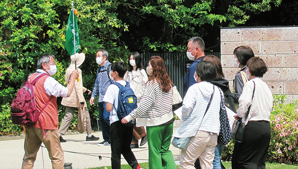 ウィズコロナの考えの下、観光客も徐々に戻り始めた。同協会でも、史跡めぐりに音声受信機を導入して人の間隔を確保するなど、感染対策を継続。広報担当の林国雄さんは「7月には、頼朝コースを政子コースにリニューアルします。多くの方に参加していただけたら」と呼びかける。