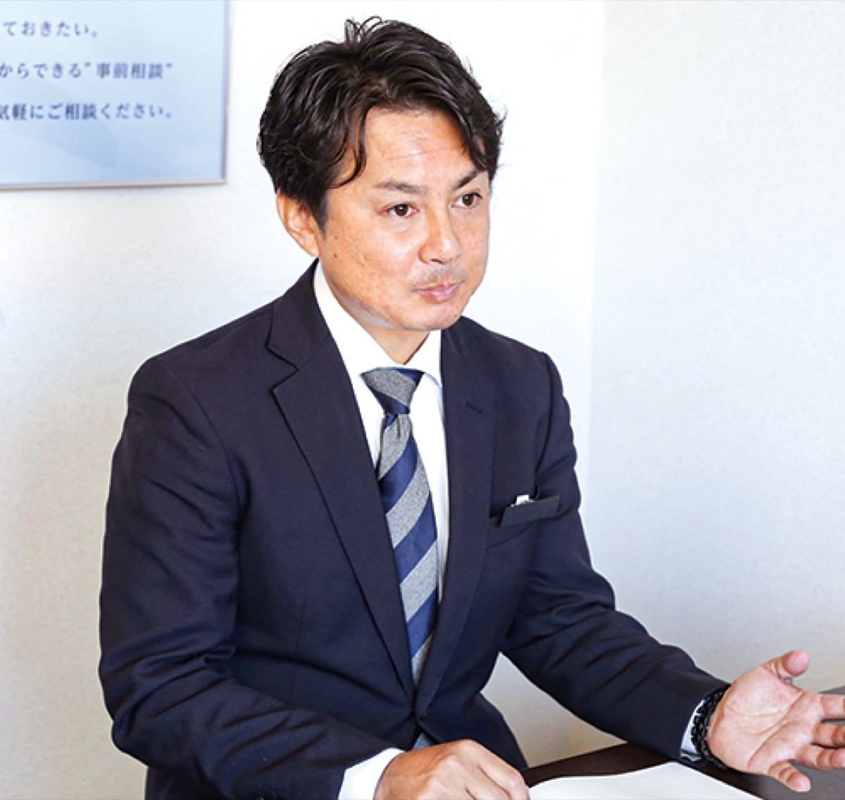 「打ち合わせからアフターフォローまで同一スタッフが一貫して対応。お客様ファーストで感謝あふれる時間になるよう尽くしたい」と森井功介代表。事前相談も随時受付。一級葬祭ディレクターが流れや費用、宗教に関することなど疑問や不安を解消してくれる。