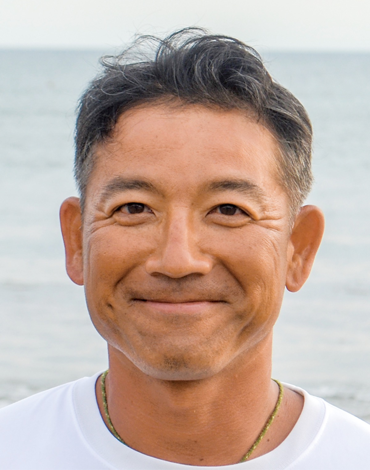 ○…ライフセーバーになり12年目。プールの監視員をしていた大学生の時に、現役のライフセーバーから聞いた体験談が元となり30代半ばで始める。「海はプールと比べて広範囲で、天候などによって海の状態も日々変化する。その環境下での監視活動に魅力を感じた」と当時を振り返る。材木座に住む現在、近所の人と会話をしながら仕事ができることにも楽しみを感じている。