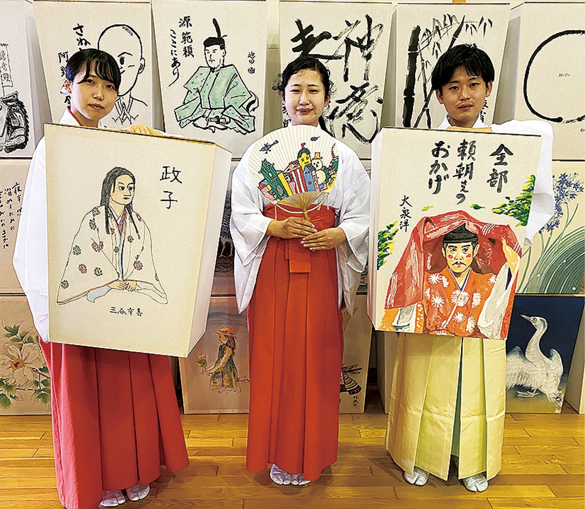 鎌倉ゆかりの画家や文人らの書画がぼんぼりに仕立てられ、約400基が境内に並ぶ。今年は大河ドラマ出演者の作品も多い。日没を迎えるとぼんぼりに明かりが灯され、幻想的な光景が広がる。