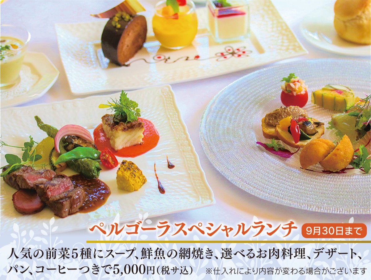 鎌倉パークホテルのフレンチレストラン「ペルゴーラ」で、同店の人気メニューや肉料理、魚料理が一度に堪能できる豪華な「ペルゴーラスペシャルランチ」が8月8日(月)から登場する。