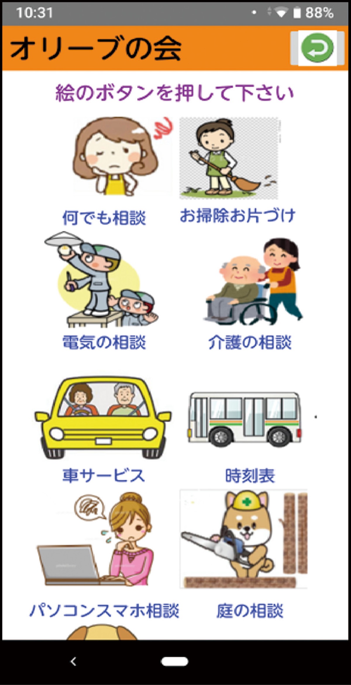 そんな中、大手企業でスーパーコンピューターなどに携わってきた経験を生かして相談や手伝いの依頼を集約する独自アプリを開発したのが、元町内会長で現在白扇会会長も務める毛利良男さん。高齢者でも直感的に使いやすいようになっており、相談ごとを選び、連絡先や希望の日時などを入力すると窓口担当者のもとにメールで情報が集約される。