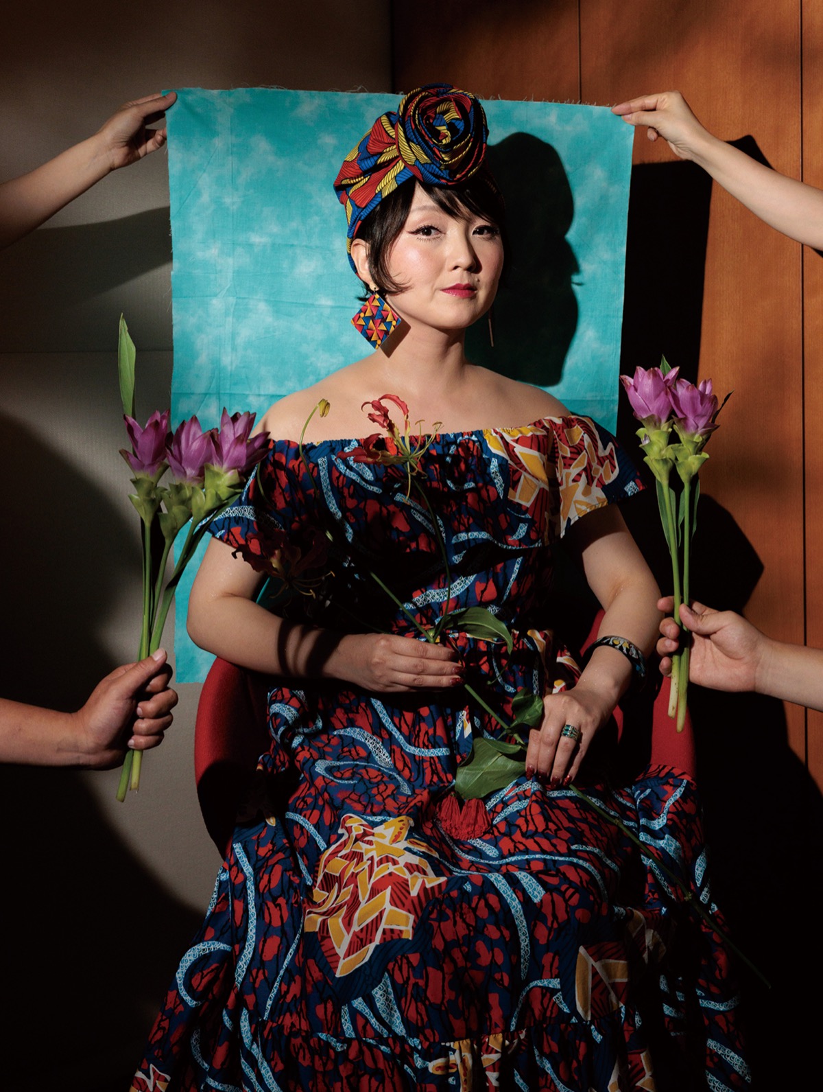 メイクアドバイスを担当したのは、06年の施設立ち上げ時から多くの患者に対応してきた資生堂メイクアップコンサルタントの青木和香恵さん。KARENさんが自身で眉を描けるようにサポートした。前進しようとする友人を撮影するため、KARENさんのダンサー時代の旧友のカメラマン・カワチアキヒトさんとHiKaRuさんも集結。通常はメイクアドバイスのみだが、資生堂美容室の協力もあってヘアメイクアップアーティストの神宮司芳子さんが医療用ウィッグを用いてヘアアレンジ。KARENさんが自身で用意した衣装に身を包み、記念の1枚が記録された=左写真。