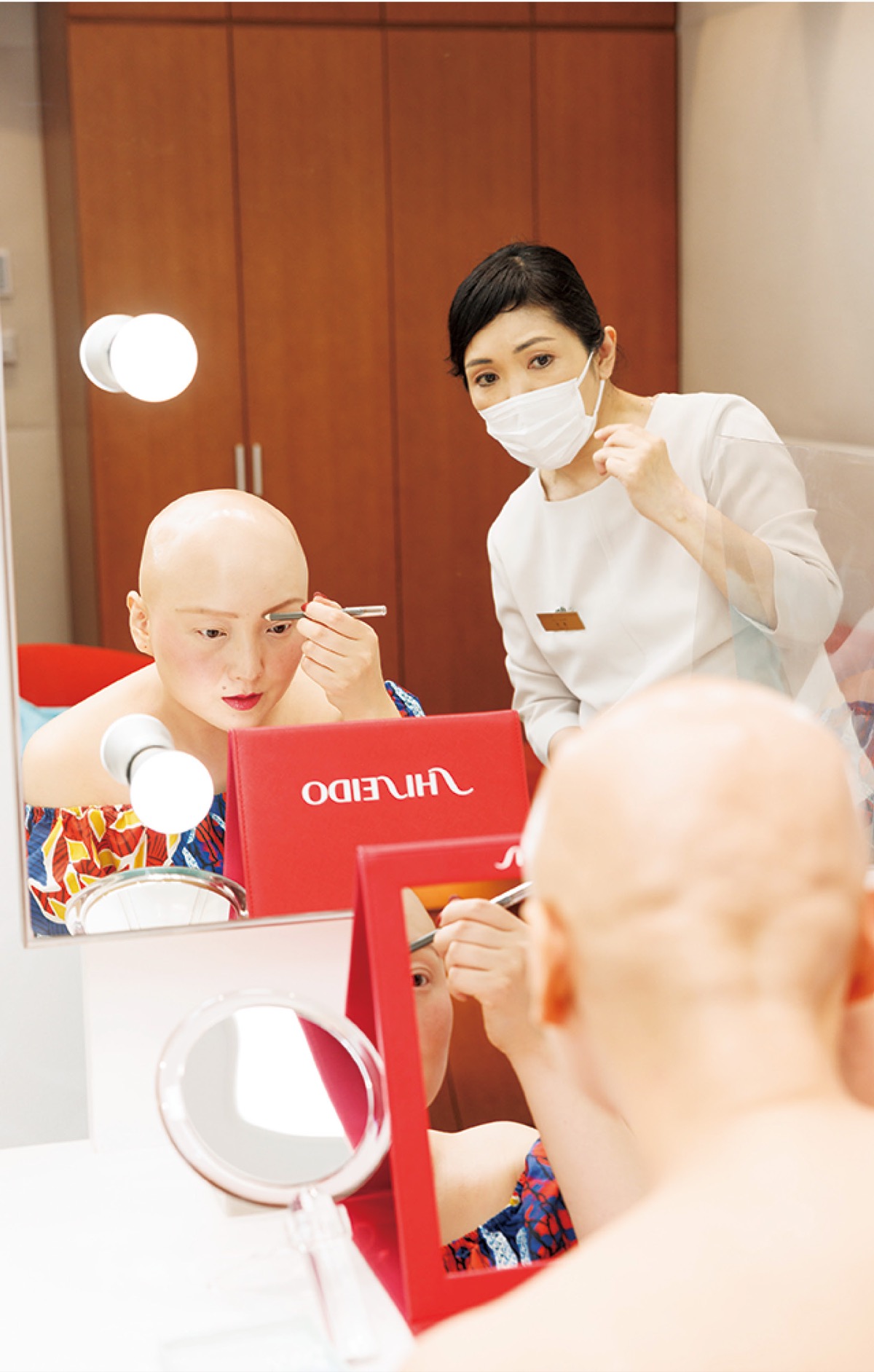 『脱毛症』『眉毛がない』などのキーワードで検索し、偶然たどり着いたのが「資生堂 ライフクオリティービューティーセンター」だった。資生堂は1956年、戦禍で火傷を負った人に向けたカバー専用のファンデーションをはじめ、肌の悩みに対応した商品開発や研究を重ねてきた。そして2006年には、あざや白斑、傷跡、がん治療の副作用による外見上の変化に対応する専門のカウンセリング施設を開設した。