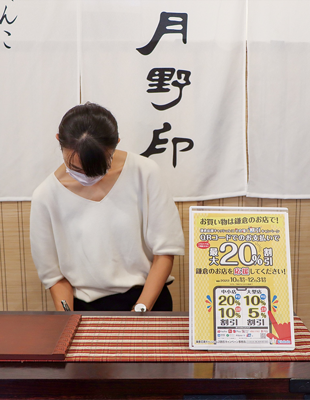 鎌倉市は、新型コロナで落ち込んだ市内経済の回復を目的に「鎌倉応援キャッシュレス『その場で割引』キャンペーン」を10月1日からスタート。買い物時に最大20%の割引が受けられ、市民や観光客の利用が少しずつ拡大している。