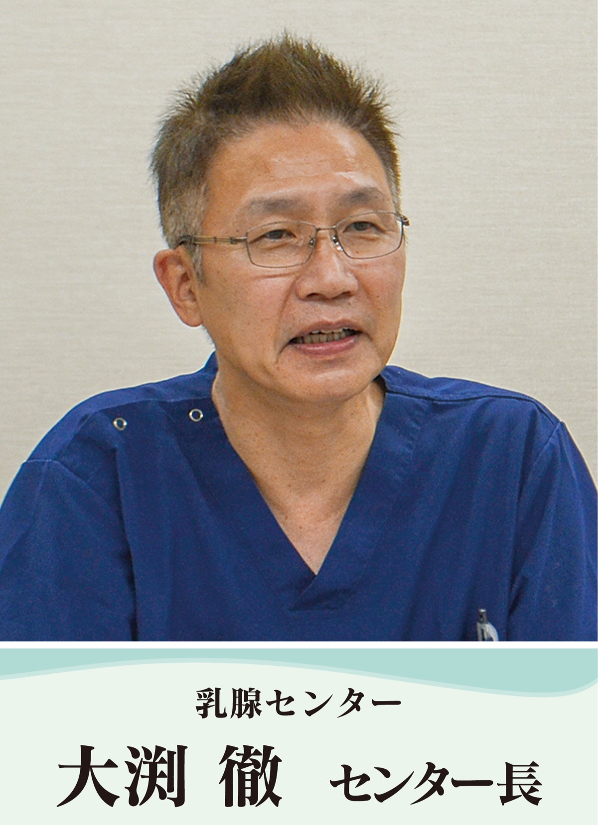 「なるべく患者さんの希望に添えるよう、切除は最小限に」。そう話すのは、同院乳腺センターの大渕徹医師だ。手術では、切除部分を最小限に抑え、副作用の少ない放射線治療などを効果的に活用し、できるだけ乳房を傷つけないようにする。再発リスクを抑えながら、患者の要望に応える治療を目指している。