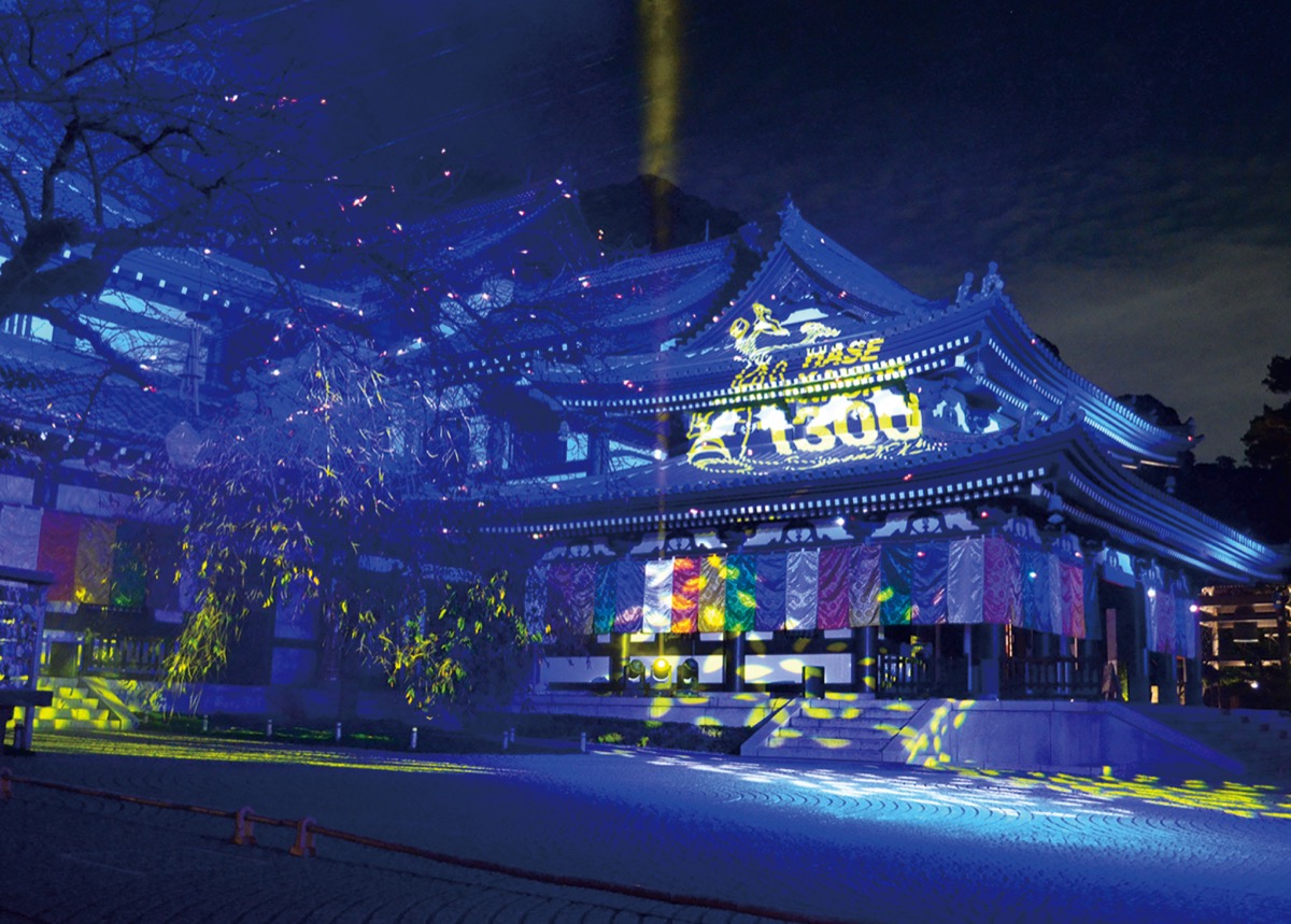 演出は、空間デザイナーの長谷川喜美さんが担当。721年(養老5年)に制作されたと伝わる本尊の十一面観世音菩薩立像とその観音信仰や、長谷寺の長い歴史と未来へ続く物語を、切り絵のスタイルを用いた光で表現している。