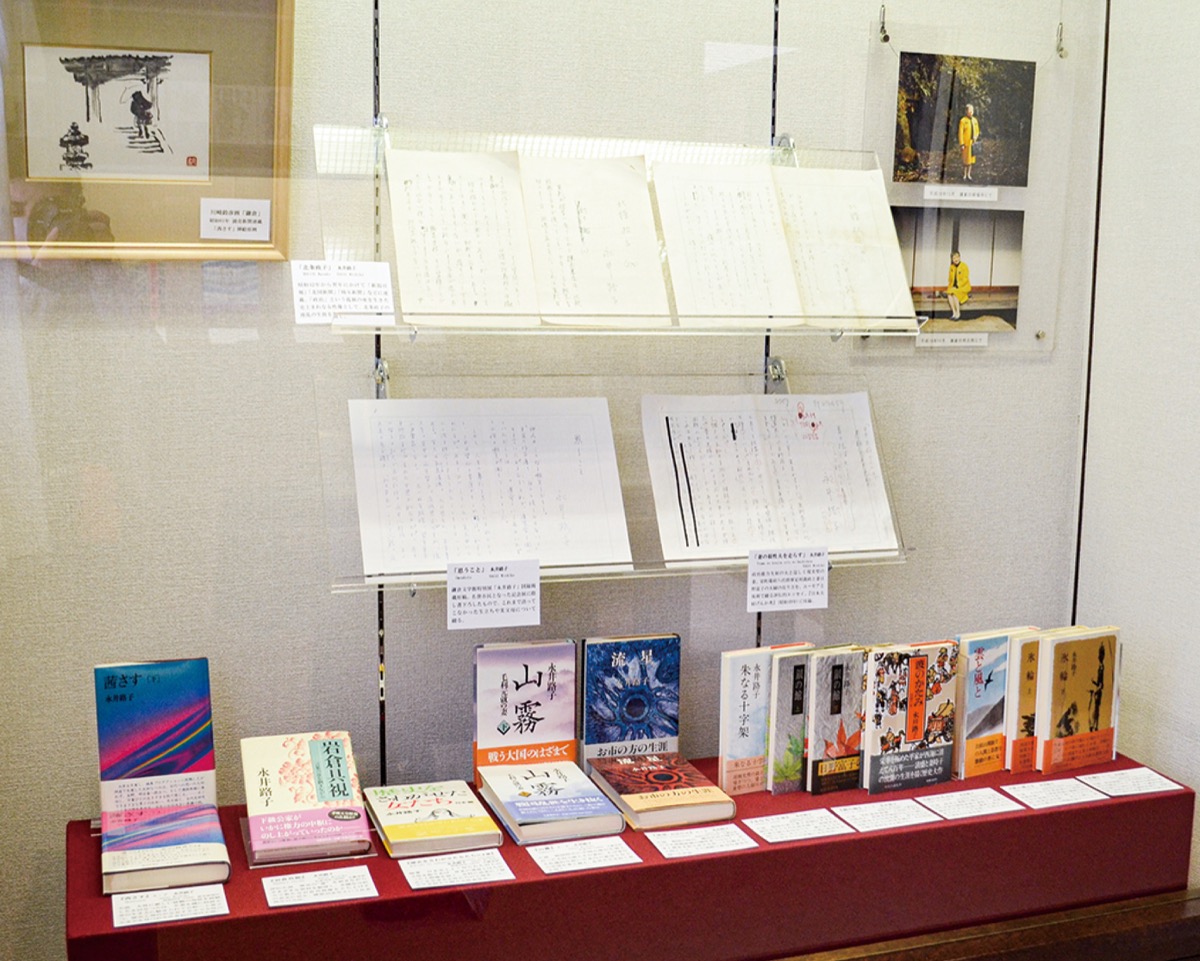 今年1月27日に97歳で亡くなった、鎌倉市名誉市民で直木賞作家の永井路子さんをしのび、鎌倉文学館で追悼展示が始まった。鎌倉を舞台にしたNHK大河ドラマ『草燃える』の原作の1つである『北条政子』の直筆原稿や、直木賞受賞作『炎環』などの著書が展示されている。