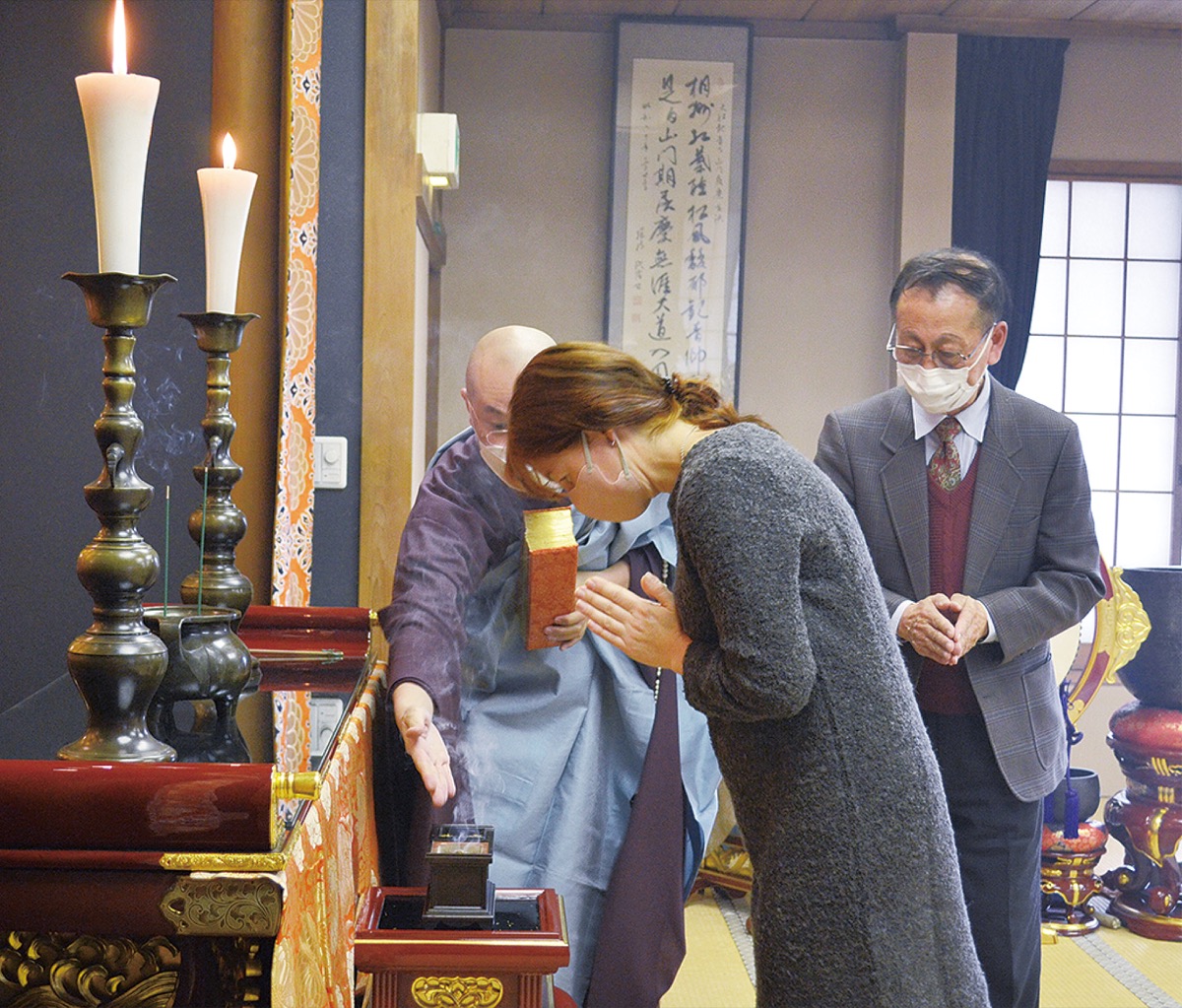 ロシアによるウクライナ侵攻が始まって1年が経過した2月24日、両国の犠牲者供養と平和を願う法要が大船観音寺で開かれた。早期終戦、復興を祈って読経が行われ、約20人の参列者が犠牲者を悼んで焼香した。