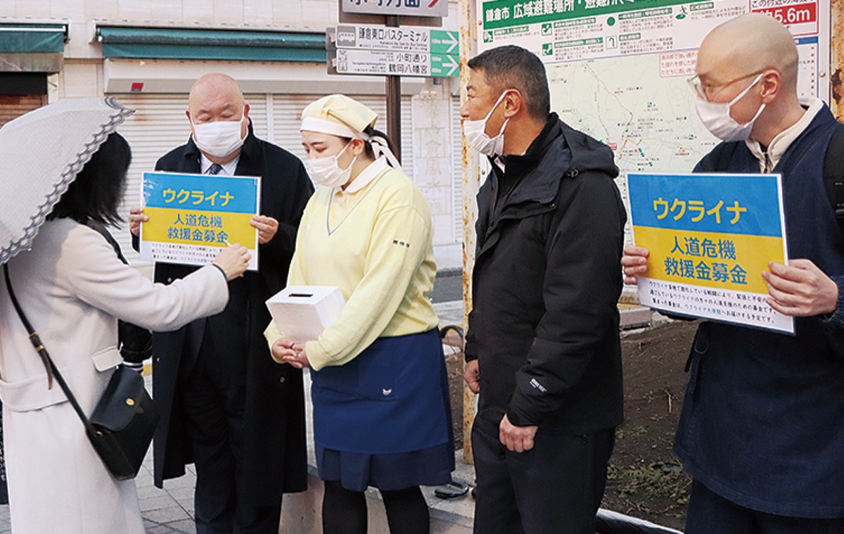 その後、大船駅と鎌倉駅前では募金活動を実施。豊島屋や鎌倉インターナショナルFCも協力し、支援を呼びかけた。豊島屋の久保田陽彦社長は「戦争は絶対にあってはならない」と言い、ガーディアンズの大津定博代表も「平和の尊さと戦争の愚かさを考える機会になれば」と話した。集まった募金約20万円は、ウクライナ大使館へ寄付される。