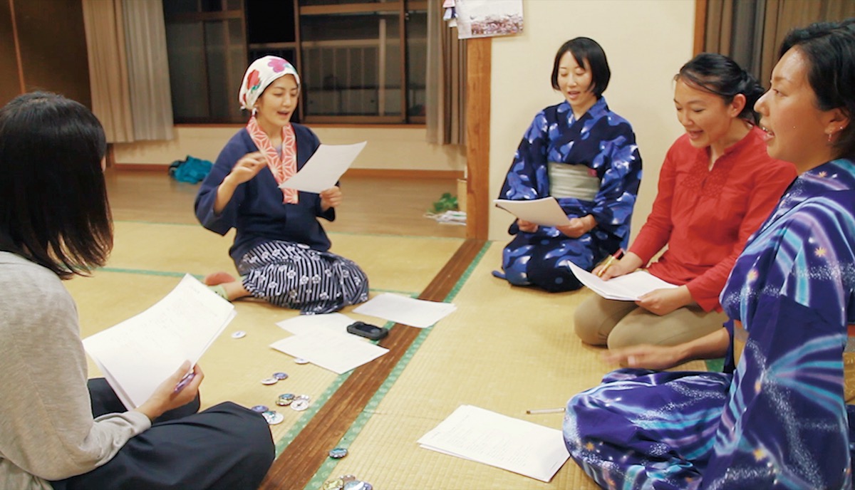 監督を務めたのは、長谷在住で映像作家の平野隆章さん(41)。「脱原発パレード」で鎌倉の街を歩く女性たちで結成された「イマジン盆踊り部」を、7年にわたり密着。日々の生活で浮かびあがる平和への思いを唄にし、踊り続ける女性たちをドキュメンタリー映画で表現した。
