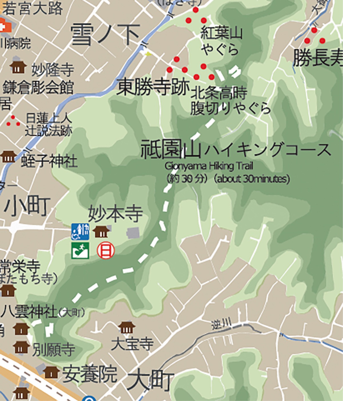 2019年10月の台風被害によって通行禁止となった3つのハイキングコースの中で、最も復旧が遅れていた祇園山コースが今年3月までに工事完了し、鎌倉市は4月1日から3年半ぶりに通行を再開した。これにより、葛原岡・大仏コース、天園コースと合わせ、3つのハイキングコースすべてで全線開通した。