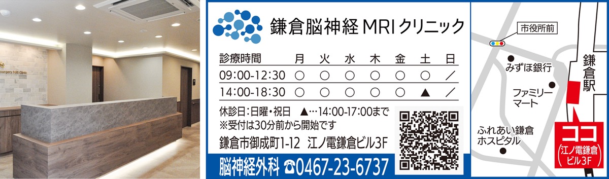 鎌倉駅西口に5月16日、「鎌倉脳神経MRIクリニック」が開院した。鎌倉駅周辺では数少ないMRIを完備したクリニックだ。MRI・CT検査の結果は、当日に医師より説明してくれるので、忙しい人でも気軽に利用できる。頭以外の検査についても紹介状を持参すれば検査が可能。頭痛・めまい・しびれ・もの忘れ・頭部外傷(乳幼児も可)・脳卒中後の治療や予防など「頭の病気かもしれない」と少しでも心配な人は一度相談を。診察は乳幼児から高齢者まで幅広く対応する。もしもの時も近隣の専門病院と提携しているので安心だ。「私は皆様の『満足』と『安心』を第一に考え、診察の中で不安を取り除き、帰宅の際は笑顔に。また、異常があった際も、早く見つかってよかったと前向きな姿勢で治療に向き合うことが出来るように後押しします。病気でなく身体の不調からくる症状であれば、出来るだけ薬に頼らない日常生活の指導をすることを心がています」と根本院長は話す。