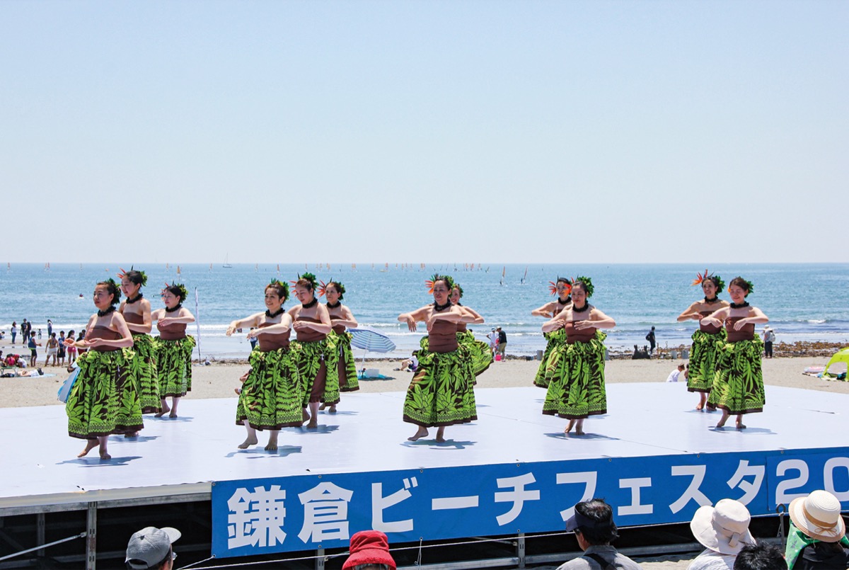 市民、観光客に鎌倉の海のすばらしさを感じてもらおうと、商工会議所や観光協会らによる実行委員会が主催する鎌倉ビーチフェスタ。海を背にした特設ステージでは、2日間にわたり22のパフォーマンスが予定され、フラダンスショーや音楽ライブ、ストリートダンス、ミュージカル、和太鼓、よさいこ踊りなどが披露される。