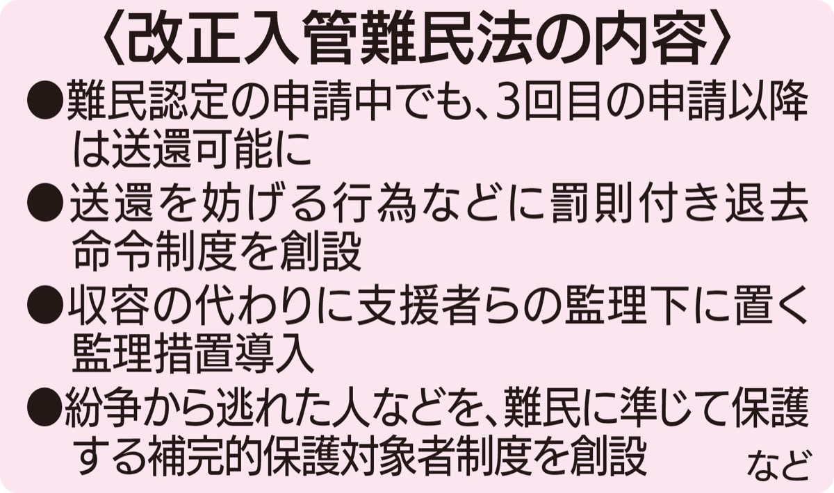 「非常に残念です。今回の法改正は、世界的な難民の保護と逆行することになります。難民を迫害の恐れのある国に送還してはならないとの国際原則に反し、強制送還が可能になりました。世界から、日本の人権感覚が問われています」