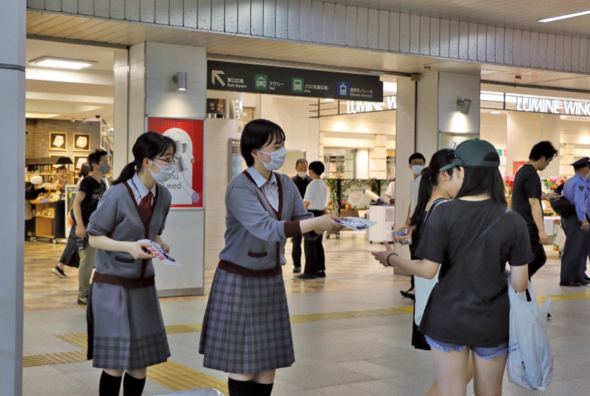 大船警察署や防犯団体の活動に、大船署管内にある大船高、栄光学園、鎌倉学園、北鎌倉女子学園、清泉女学院の中高生24人も参加し、啓発チラシを配布した。夏休みを前に、中高生たちは駅を利用する同世代の若者へ闇バイトに応募しないよう呼びかけ、高齢者には特殊詐欺被害などにあわないよう注意を促した。