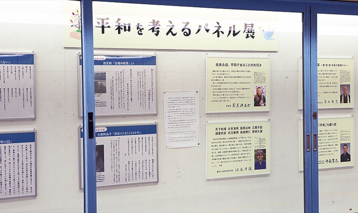 鎌倉駅地下道ギャラリーで8月7日(月)まで、平和を考えるパネル展が開催されている。太宰治や川端康成といった鎌倉ゆかりの文学者が作品に記した平和への思い、著名人のメッセージを掲載したパネル20枚が並ぶ。