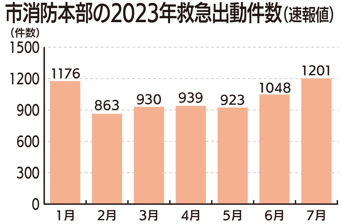 件数の増加傾向について市消防本部は、「新型コロナの5類移行により外出する人が増え、交通事故での負傷者や体調不良を訴える人が増加している。新型コロナの患者が一定数いることも要因」と説明する。