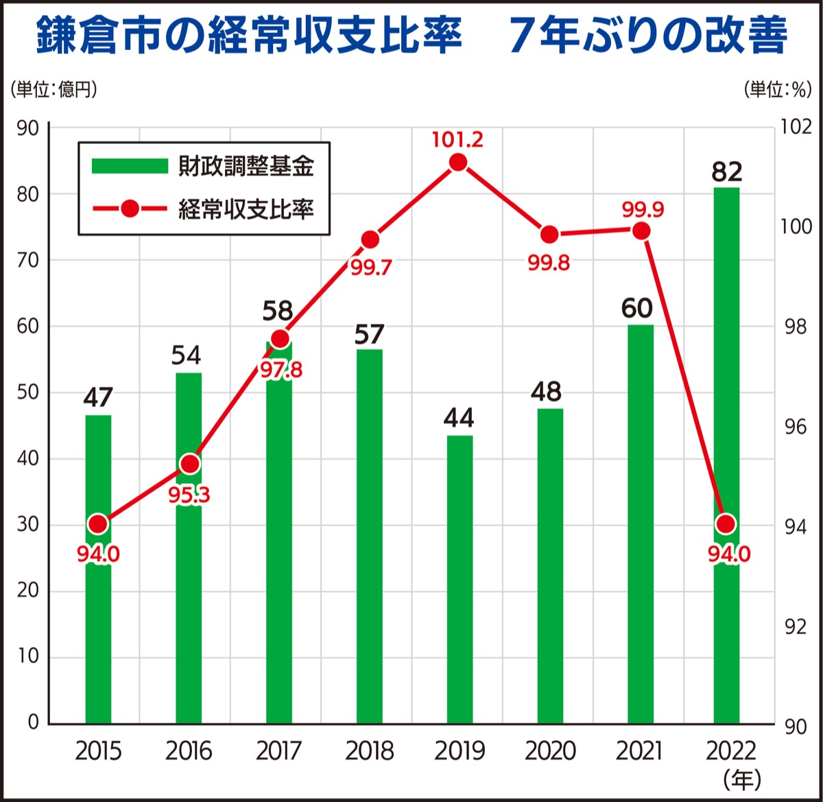 ここに来るまで2年以上かかりました。改善以上の成果です。2022年度の経常収支比率94・0%の効果額は、2021年度と比較し全体として約24億円でした。