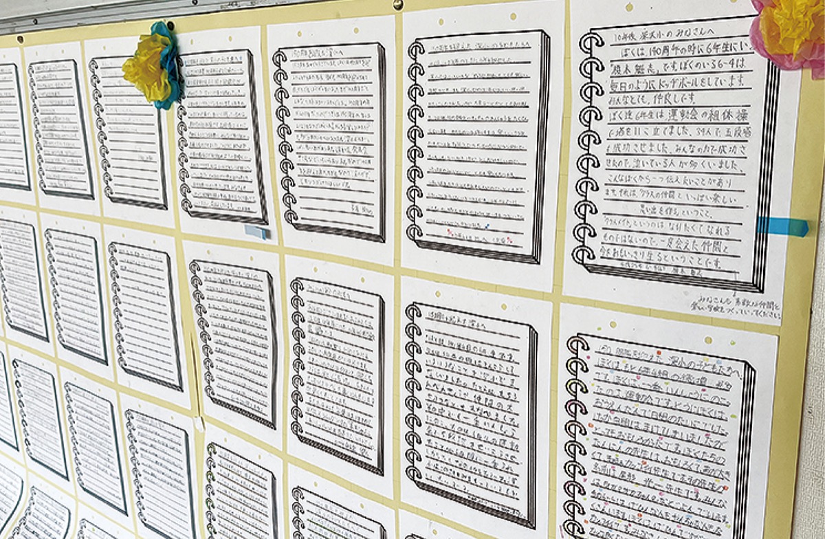 また校内には、10年前の卒業生が未来の小学生に向けて書いたメッセージが展示され、「クラスの仲間と楽しい思い出を作ろう」といったエールが記されていた。