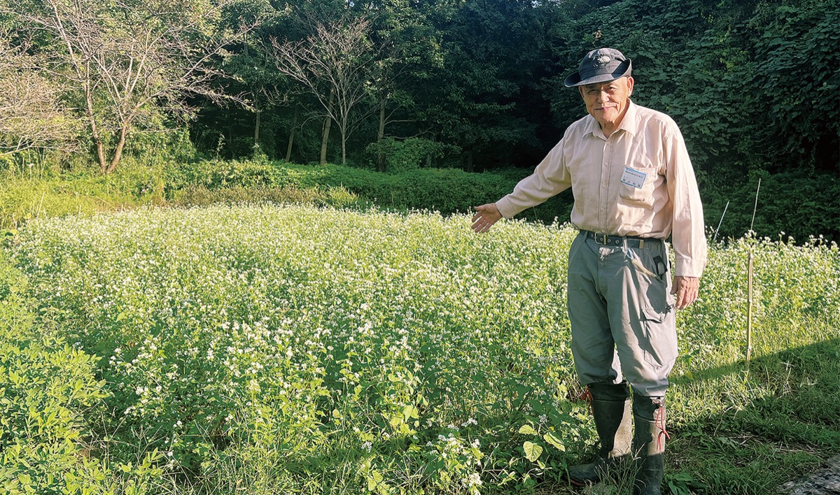 広町緑地でそばの栽培が始まってから今年で8年目。世話人を務める森田邦彦さん(87)は、北海道の農家で生まれ、農業経験も豊富。森田さんは、「今年の栽培場所ではもともと大豆を育てていたが、少雨の影響で芽が出なかった。すぐ諦めてそばに変更した結果、順調に育っている」と話す。