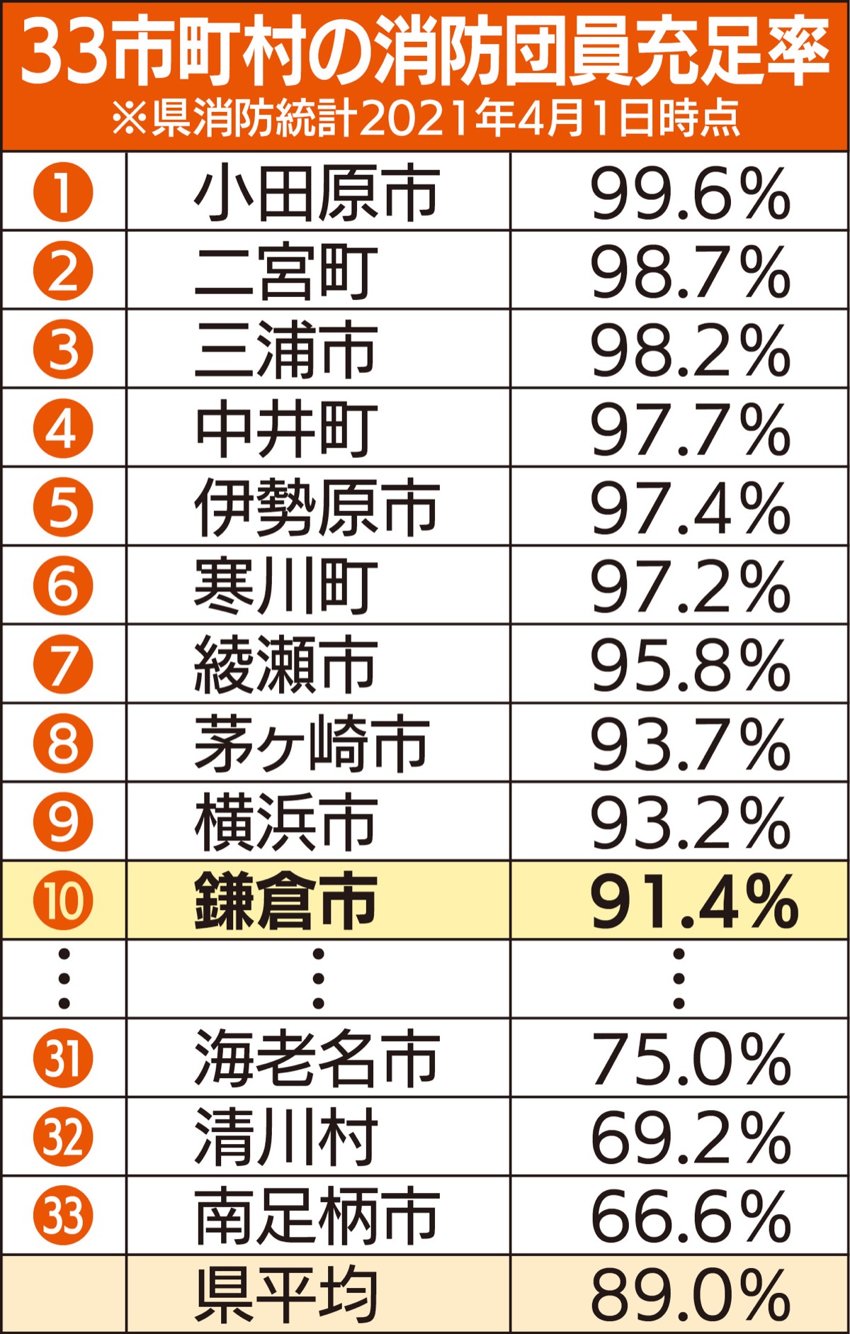 市内各地で28の分団を構成し、計402人が所属している市消防団。4月時点での団員の平均年齢は42・5歳で、神奈川県全体の46・1歳と比較しても若い。年代別では、40代が167人と全体の42%を占め、50代112人、30代78人、20代19人、60代以上16人、10代1人と続く。就業場所別では、市内が246人、県内101人、県外46人。業種別に区分するとサービス業が79人と最多で、建設業73人、製造業57人となっている。