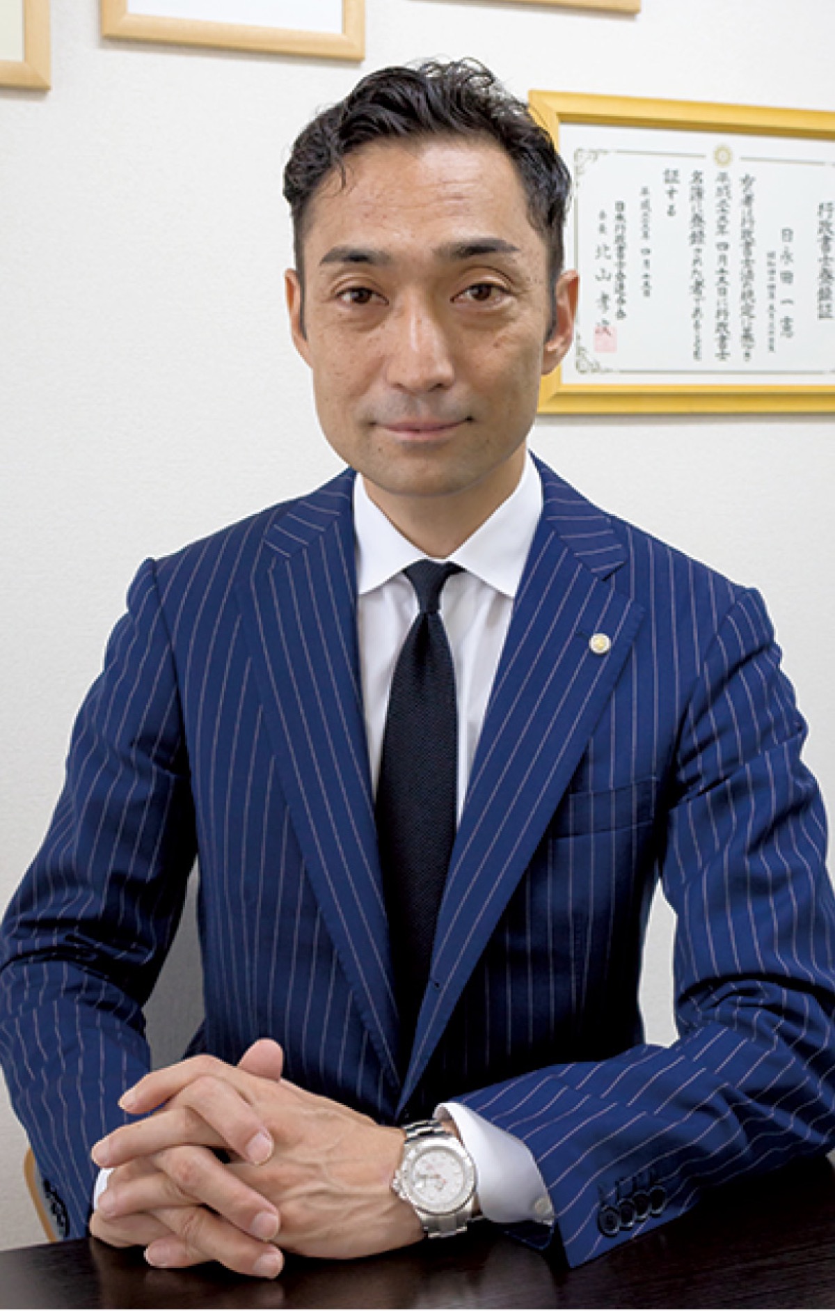 日永田一憲代表が理念に掲げるのは、「法律サービスを通し、安心と幸せを」。相続手続きをスムーズに行うことで、相続人の負担を軽減し、家族の安心と幸せをサポートする。