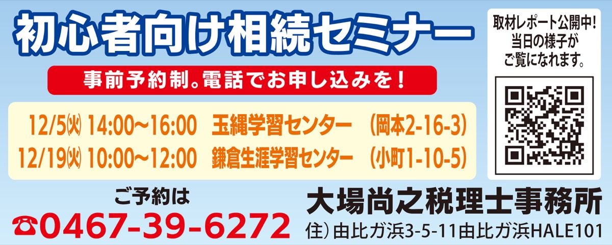 そんな読者に必見なのが大場尚之税理士が講師を務める「初心者向け相続セミナー」。難しいと感じる相続について、身近な事象に照らし合わせた分かりやすい解説が、好評を博している。