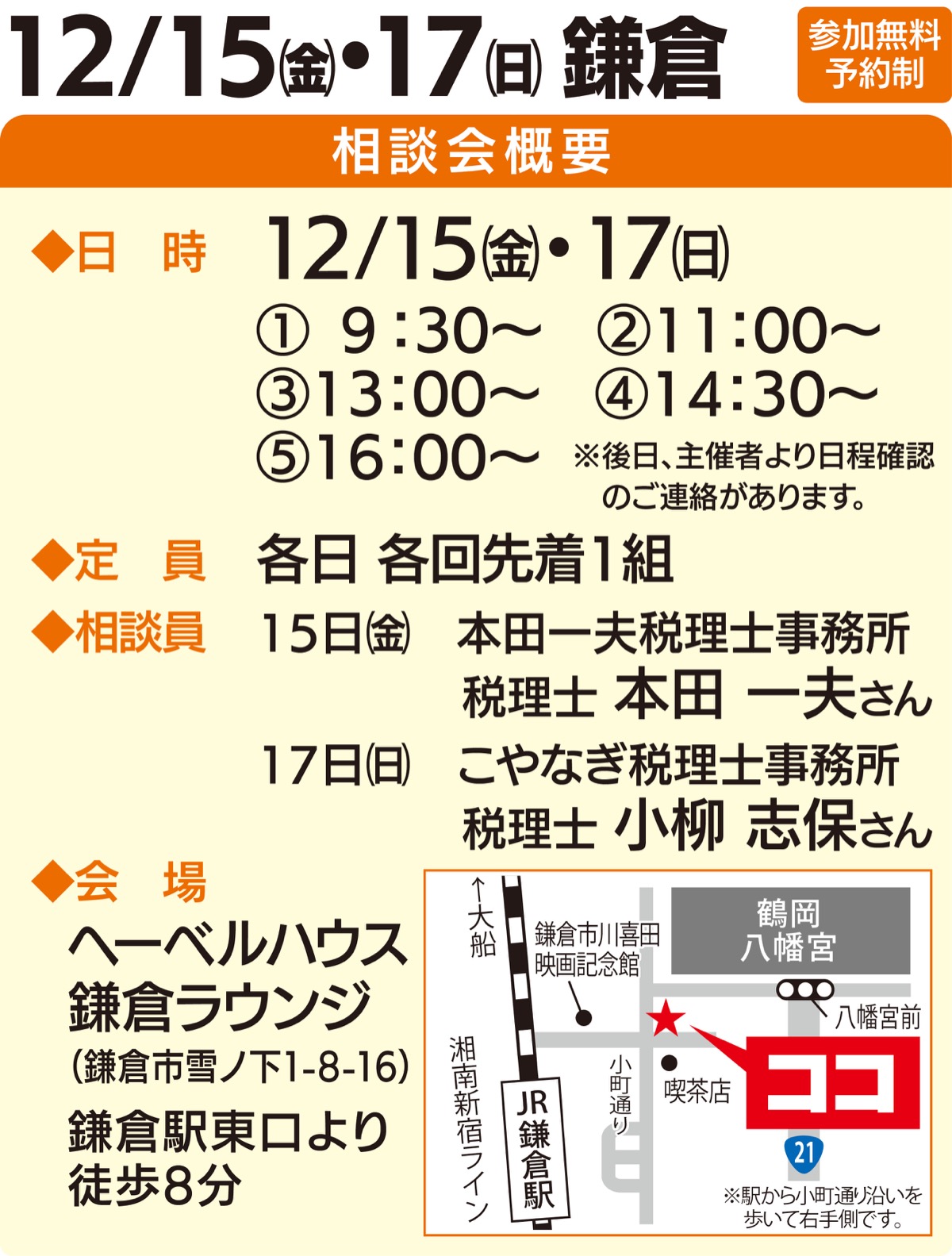 鎌倉で開催 相続・税務・生前整理の個別相談会