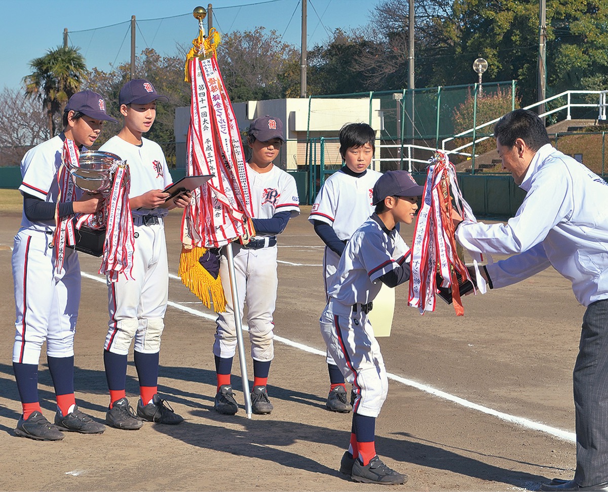 第45回鎌倉ライオンズクラブ旗争奪少年野球リーグが12月2日に閉幕し、優勝した鎌倉青空ベアーズに優勝旗が池田誠吾会長から手渡された。