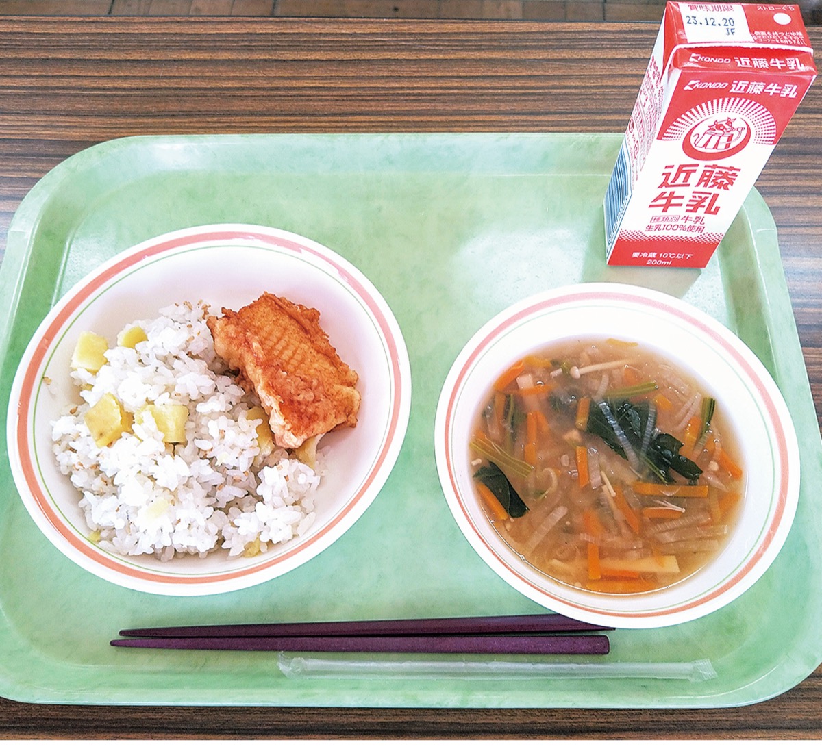 給食の献立は学校によって異なるが、愛川町のさつまいも・にんじん・しょうが、平塚市のだいこんを使い、西鎌倉小学校ではおこわや吉野汁、天ぷらが、山崎小学校ではオーガニック小麦粉を使ったすいとんや鎌倉産のかます、しょうがごはんが提供された。