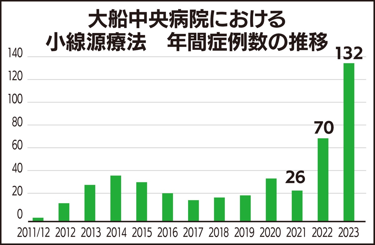治療は、全身麻酔をしたうえで1時間程度。入院も3泊4日と短期間で済み、斉藤医師は「副作用が少なく、体への負担も軽い治療法」と話す。