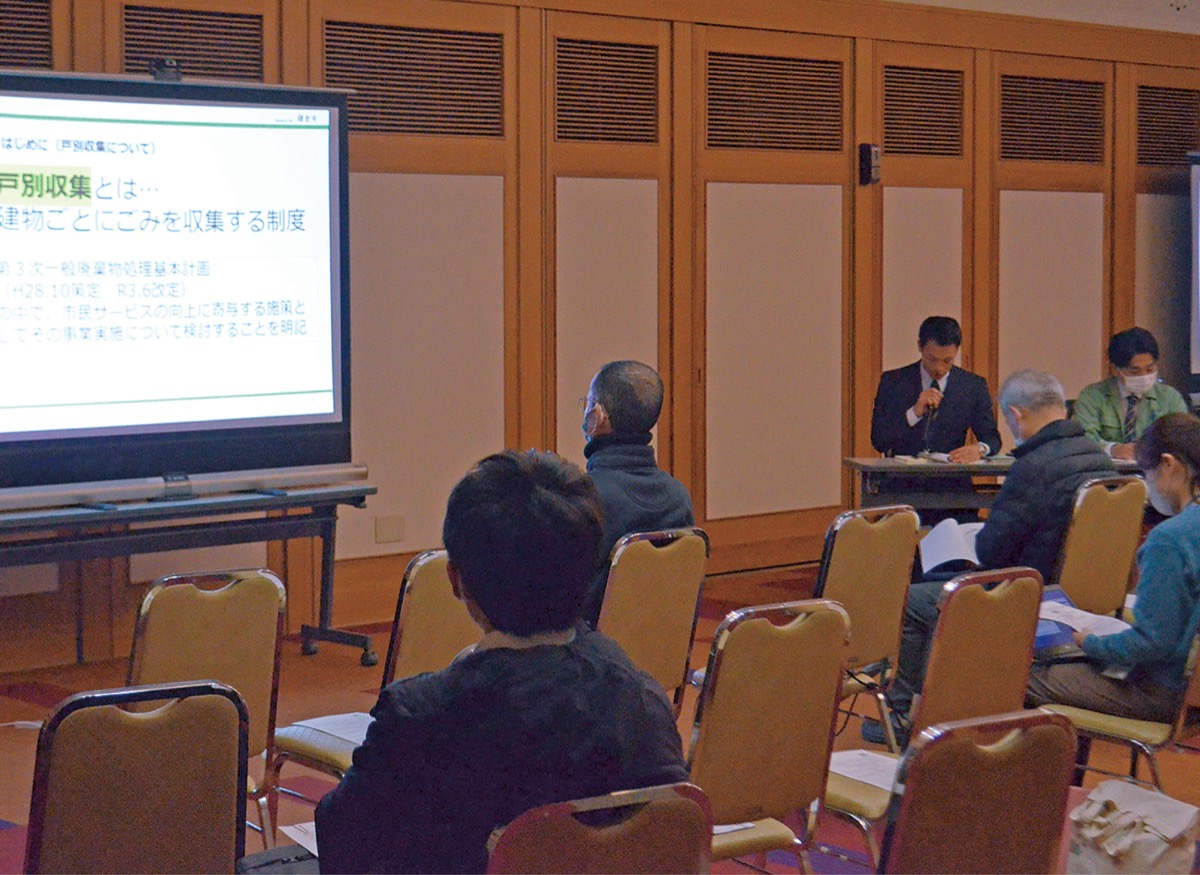 鎌倉市は2月、ごみの戸別収集についての方針(素案)をまとめ、22日から市内各地で住民向け説明会を実施している。鎌倉芸術館で行われた初回の説明会には、市民5人が参加。市担当者は、戸別収集の必要性や実施方法などについて説明し、「一部エリアで来年4月の開始を目指している」と話した。