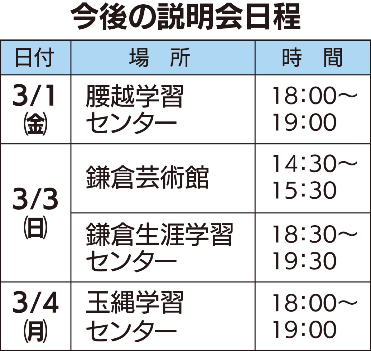 説明会は予約不要で、3月4日(月)まで市内各地で開催。また22日(金)まで市民から意見を募るパブリックコメントも実施。(問)市ごみ減量対策課【電話】0467・40・5542