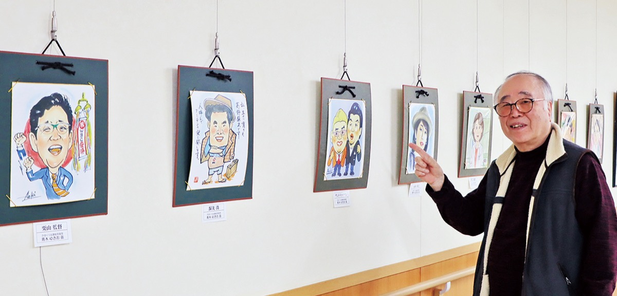 会場には、発足23年目を迎えたかまくら似顔絵倶楽部のメンバーが描いた作品40点以上が並ぶ。昨年のWBC侍ジャパン・栗山英樹監督やお笑いコンビのサンドウィッチマン、女優・吉永小百合さんなどの著名人に加え、同病院の小林修三院長の描写も。似顔絵倶楽部の青木ゆきお会長(85)は「笑顔の絵を見て、病院にいる人が元気になってもらえれば」と話す。