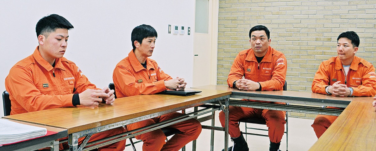 最大震度7を観測し、石川県を中心に甚大な被害をもたらした能登半島地震。鎌倉市では地震発生を受け、消防隊員と市職員の現場派遣や支援物資の提供、募金活動の実施などにより、被災地を支援している。東日本大震災の発生から13年となる今月、被災地で支援活動を行った消防本部の森勇樹さん(46)、山口次郎さん(36)、長谷川駿さん(31)、小澤祐貴さん(27)と、市総合防災課の小林伸生さん(41)に話を聞いた。