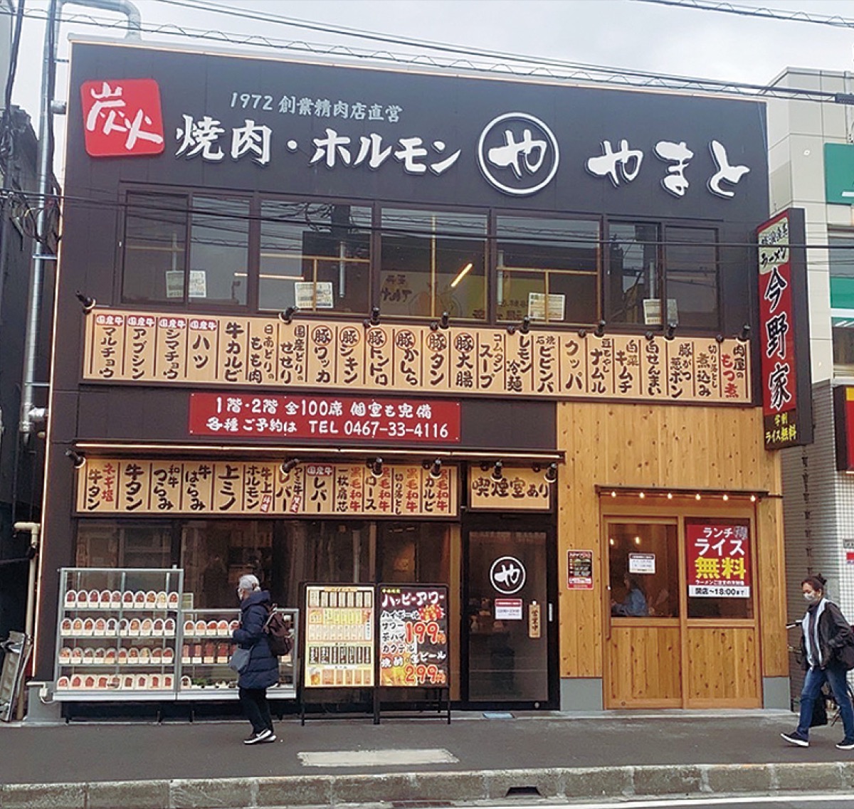 2023年11月に新規オープンした「焼肉ホルモンやまと大船店」。JR大船駅東口徒歩1分の好立地に加え、越谷の精肉店直営店として、極上の黒毛和牛を筆頭に、上質な牛・豚・鶏・ラム肉などを取りそろえ、世代を問わず多くの人でにぎわい好評を博している。