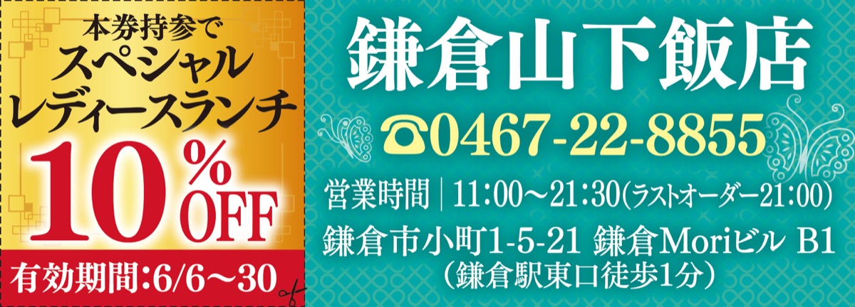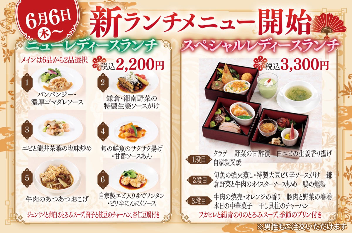 食材が持つ旨味を最大限に引き出すことで、コクがあるのにさっぱりとした中華料理を実現するのは、若宮大路沿いに店舗を構える「鎌倉山下飯店」。地元食材をふんだんに使用し、四川風でも広東風でもない「鎌倉中華」が堪能できる同店は、今年で創業36年。豊富な品数と多彩な味わいで15年間親しまれているレディースランチが、6月6日(木)から新メニューとして生まれ変わる。