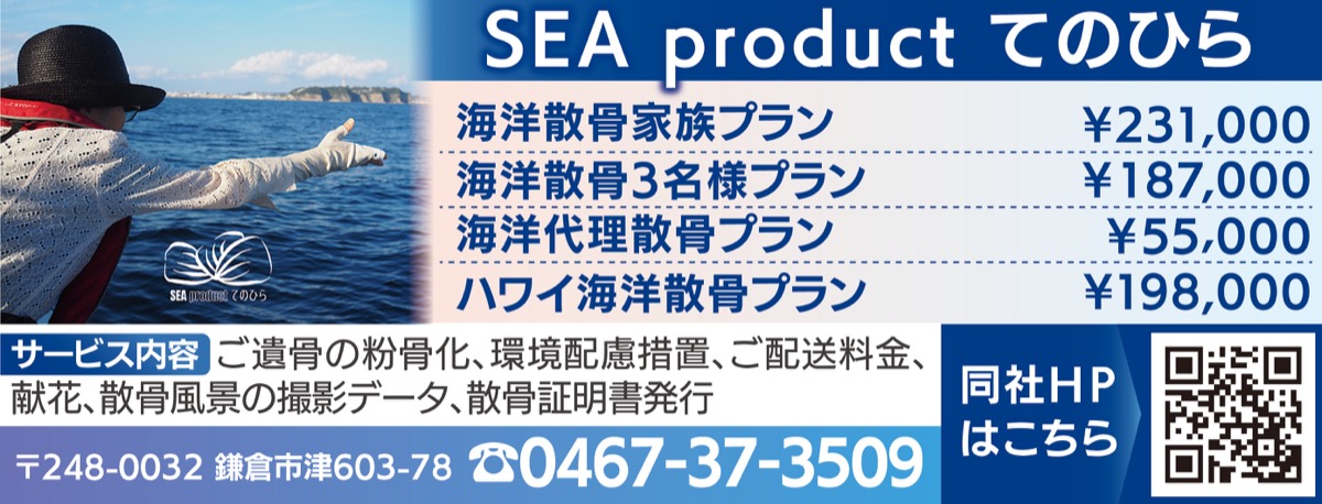 今夏で開業3年目の同社は、湘南エリアの豊かな自然観を生かした手厚いプロデュースが魅力で、利用者からも「10年決心がつかなかった父の散骨をお願いして良かった」、「打合せから散骨後までとても親身で、墓じまいを安心して任せられた」と好評。夫で取締役の大樹さんは、「寄り添ったご提案をします」と話し、大自然への旅立ちをサポートする。